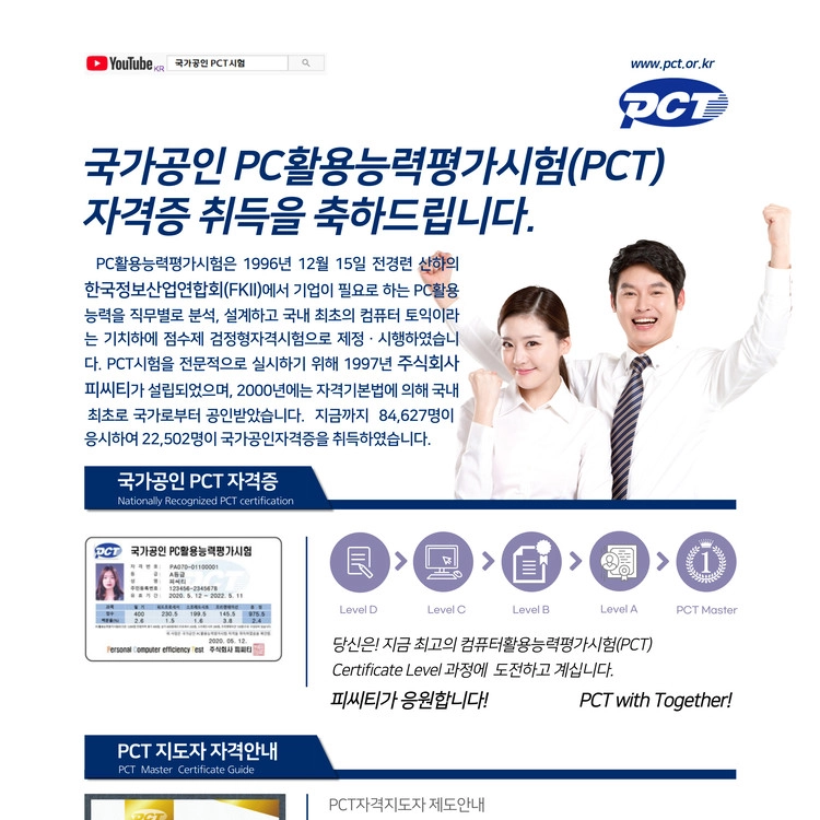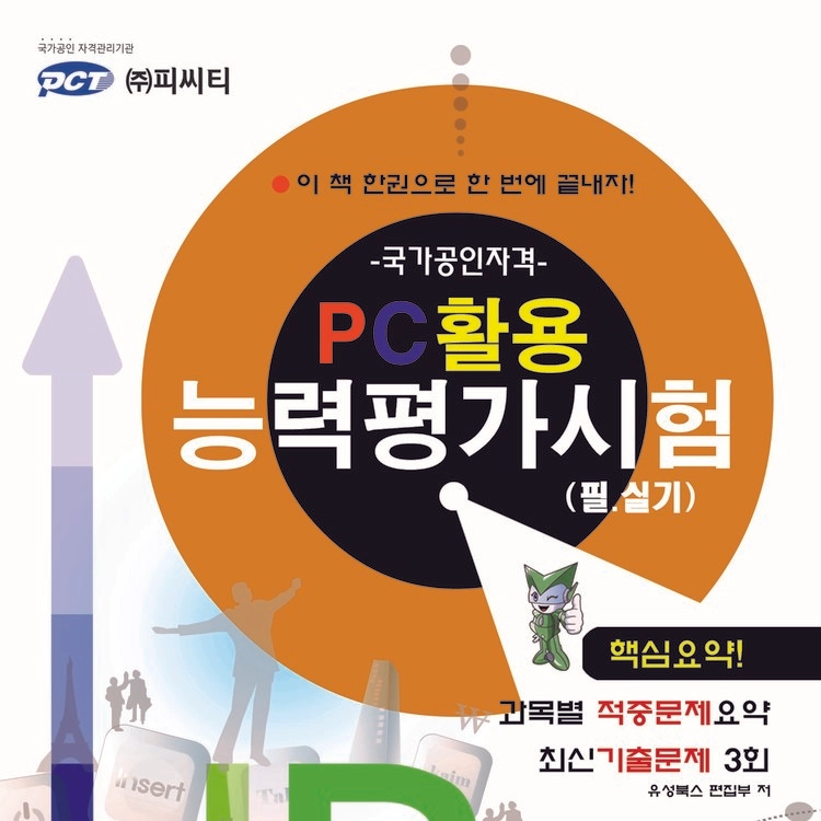 주식회사 피씨티에서 시행 관리하는 국가공인 PC활용능력평가시험(PCT) 필기-실기 문제풀이 교재입니다.