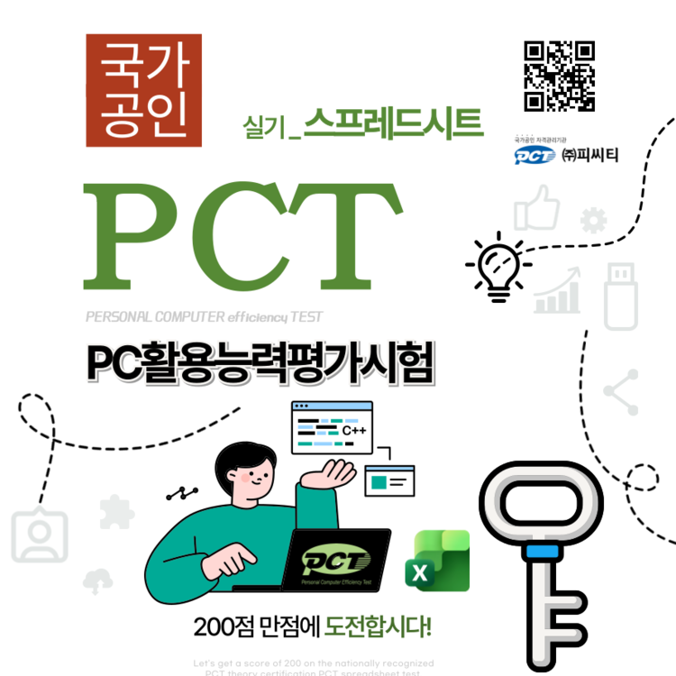주식회사 피씨티에서 시행 관리하는 국가공인 PC활용능력평가시험(PCT) 실기_스프레드시트(엑셀) 교재입니다.